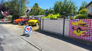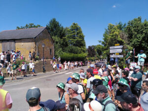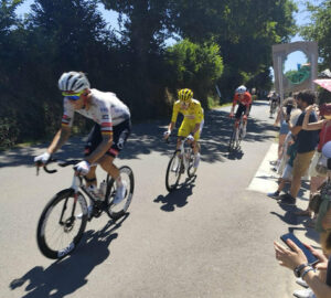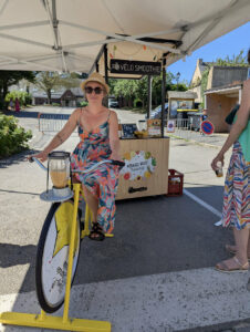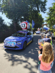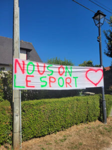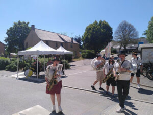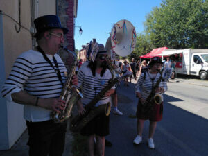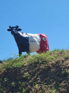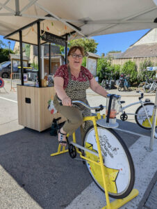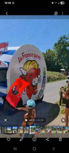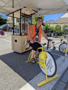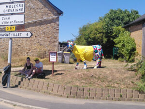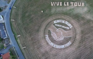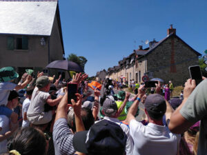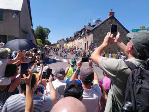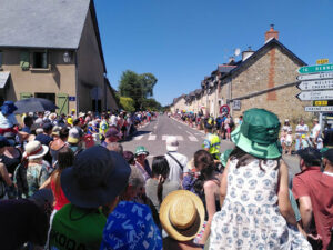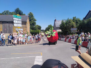 Notre village s’est mis en fête pour voir passer la caravane et les coureurs du Tour de France : galettes, buvettes, fanfare, fresque agricole, animation de fabrication de jus de fruits à vélo (Permajuice), maillot jaune pour la Vache, public nombreux et inventtivité des habitant·es !
